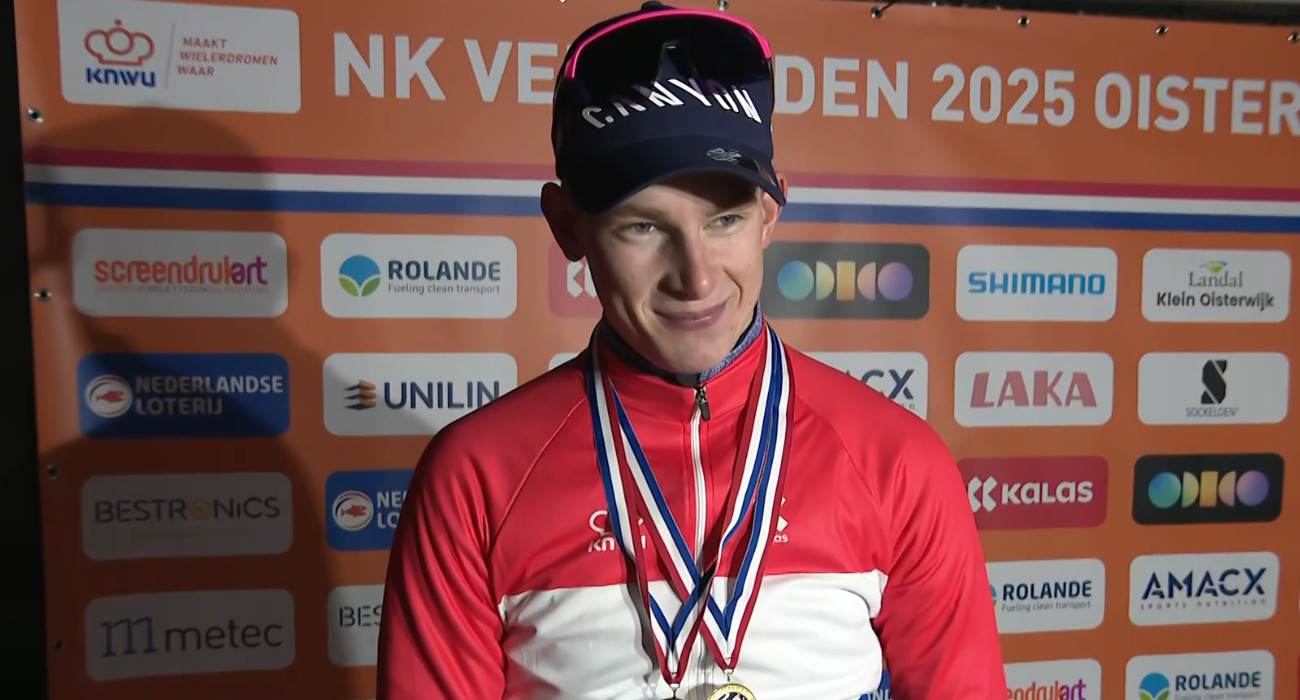 De 21-jarige Tibor Del Grosso uit Eelde heeft afgelopen zondag in Oisterwijk het NK veldrijden gewonnen.